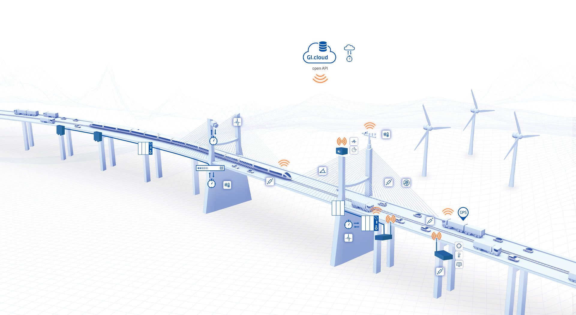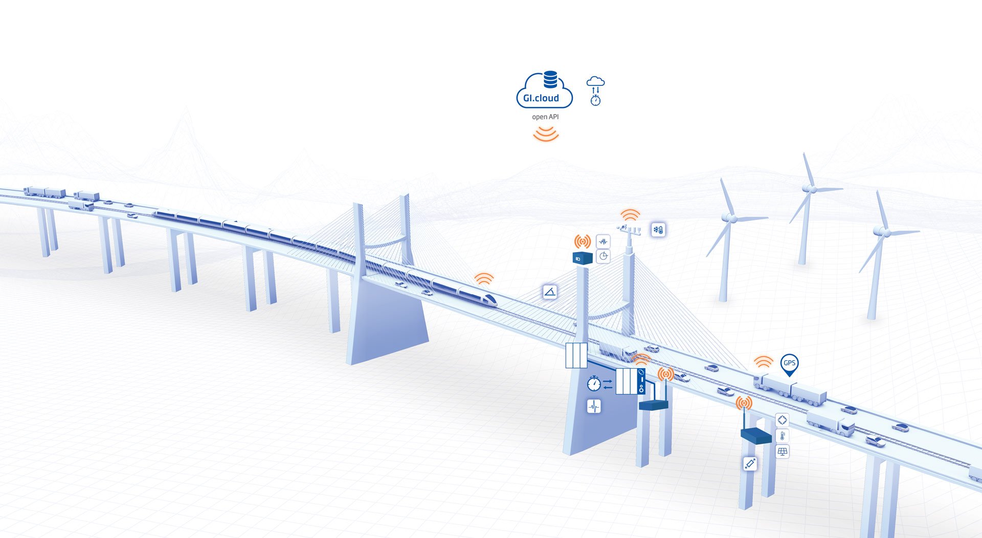 Gantner 的监控解决方案建立在分布式数据采集 (DAQ) 模块和中央 Q.station 控制器的强大基础架构之上,这些模块和控制器协同工作,收集、同步和集中来自加速度计、应变计和摄像头等各种传感器的数据,并通过我们的云平台 GI.cloud 上的开放式 API 无缝访问这些数据。