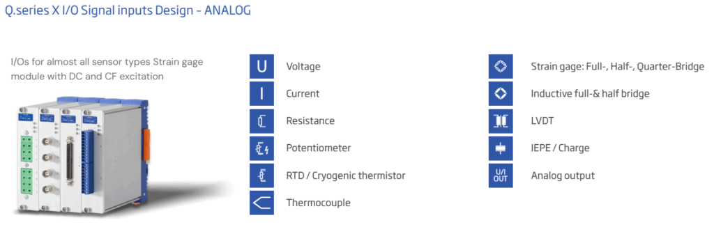 - Acceleration / vibration (IEPE accelerometers, MEMS where appropriate)
